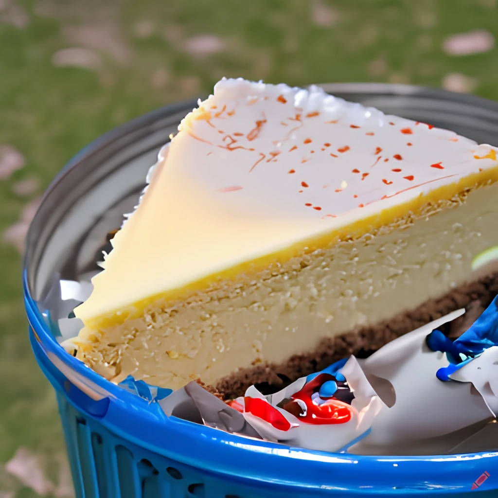I didn’t take a photo of their cheesecake during my visit, since this review was written before the site went live. However, I had an AI generate this image of a cheesecake in a trashcan, which I thought was a fitting visual metaphor for the dessert’s disappointing taste.