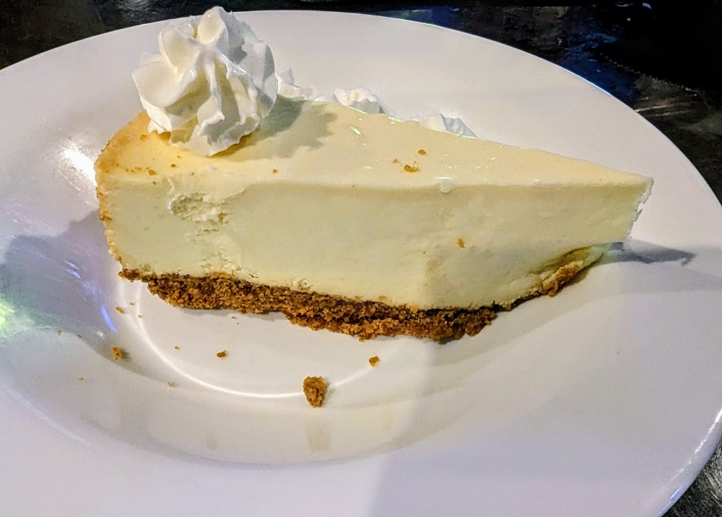 If there was any flavor to be found, it came solely from the whipped cream, and that is never a good sign. A cheesecake should stand on its own, with the whipped cream serving as a complement, not the main source of enjoyment. Rarely do I encounter a cheesecake that I take one bite of and immediately don’t want another, but that was the case here.